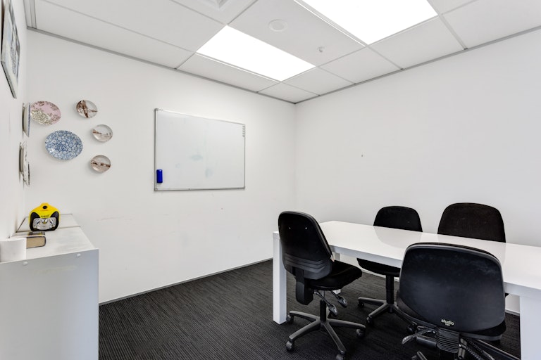 Filled with good natural light, this contemporary office space has a very pleasant elevated outlook. It contains a polished boardroom.