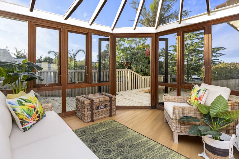• Sun-drenched sunroom, ideal for morning coffee, reading or relaxing.