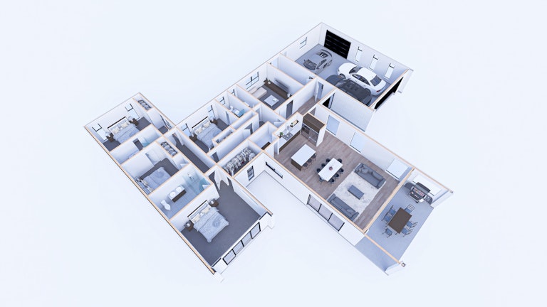 The primary suite, located at the northeastern end of the home features a modern ensuite complete with a bath and an elegantly designed dressing room. Three generously sized bedrooms complete the accommodation with two bedrooms sharing a bathroom via interconnecting cavity sliders; whilst the third bedroom has its own private ensuite.