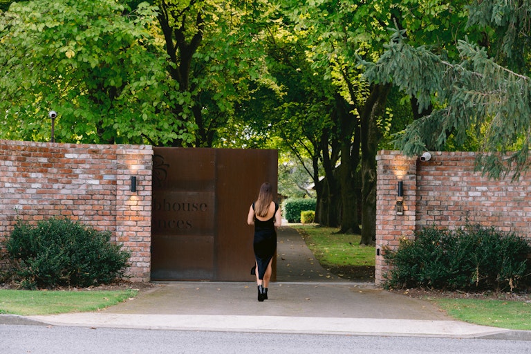 • Private, established tree lined entrance with custom corten steel gate and fencing.