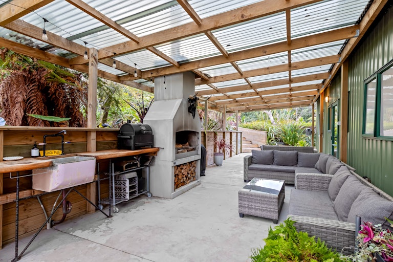 Concrete Couch,Outdoor Kitchen,Outdoor Fireplace,TV Aerial,2x Chicken Coop,2x Dog Kennel Run,Glass House,Bar Leaner