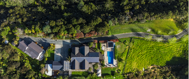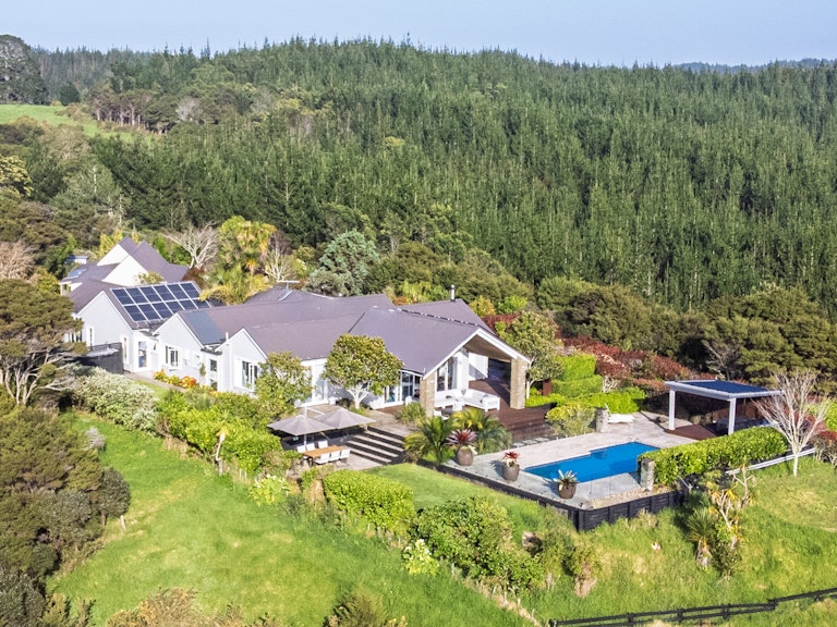 Step into a world where every day feels like a getaway. Privately positioned on one of Dairy Flat's most beautiful ridgelines, this striking lifestyle property blends relaxed luxury with smart design, offering a resort-style main residence and a separate legal minor dwelling, both capturing wide, panoramic views.