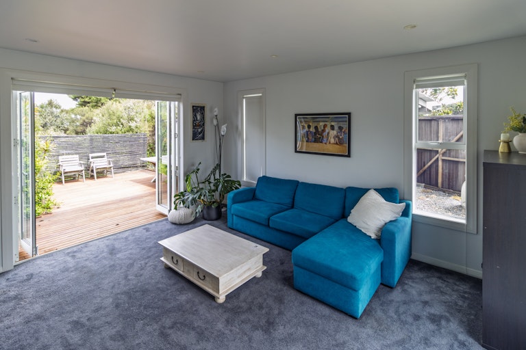The main home has a wonderful sense of space and calm, with soaring ceilings, multiple living zones, and seamless indoor-outdoor flow. There are four generous bedrooms, three living areas, and two beautifully appointed bathrooms including a luxurious ensuite, plus a powder room for guests. The designer kitchen with a walk-in scullery will delight entertainers and family cooks alike, combining style and practicality in equal measure.
