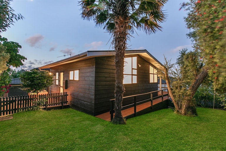 Through the sweetest front entrance, past two bedrooms and the white-washed combined bathroom and laundry, the hall leads to the tasteful open-concept kitchen, dining and living; with its vaulted ceilings and a flood of sunlight, the overall sense of space is divine! With an iconic view to WOW and seamless indoor/outdoor integration via sliders, entertaining on the elevated deck is written in the stars! Just pour the G&T using fresh citrus from the lemon tree, and any special celebrations are set to soar. Fully enclosed with room for a trampoline and a vege patch, the easy-care gardens are a safe space for both littlies and pets to muck about. Topping it off, there is off-street parking for one, a heat pump and loads of storage.