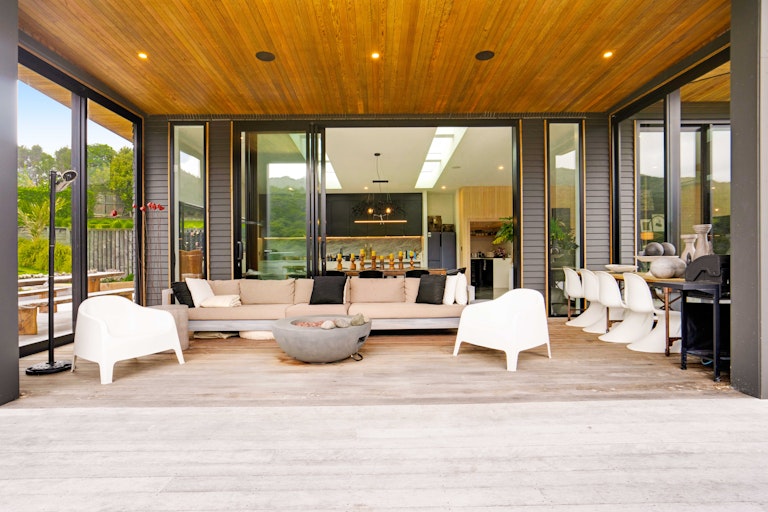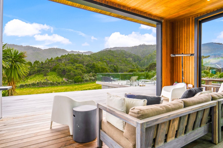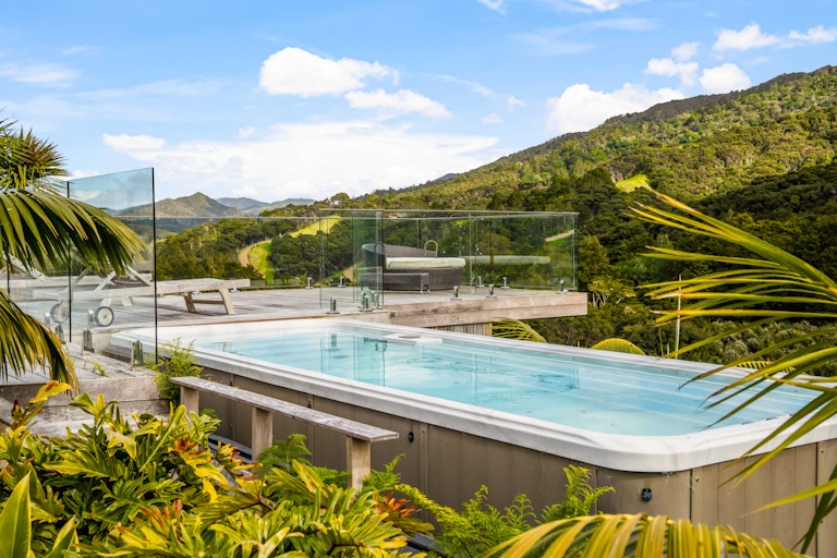 • The heart of the estate is an architect-designed home of four sumptuous bedrooms, elegantly complemented by a fully self-contained apartment, perfect for guests or extended family. Vast decks spill outward like an invitation, framing a heated ozone swim jet pool and resort-style entertaining spaces where life unfurls under golden skies.