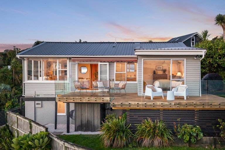 Elevated to take in breathtaking views across the Waitemata Harbour, this stunning 1950s weatherboard home offers those searching for a coastal home with heart and soul a quality of life that is often sought but rarely found.