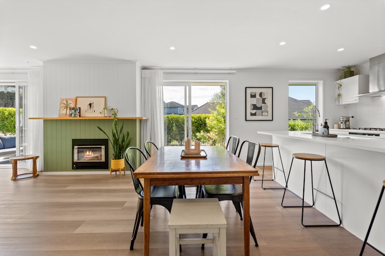 Inside, the quality is immediately evident. New flooring throughout gives the home a fresh, modern feel, while the décor is beautifully finished and move-in ready. The open plan living area is light-filled and inviting, flowing seamlessly to a north-facing garden and covered alfresco space. Come winter, the gas fireplace provides instant heat and ambience, creating a cosy hub for family time and relaxed evenings at home.