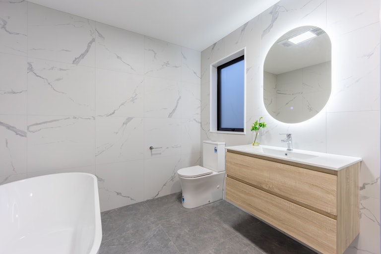 Step inside to a welcoming entry with touch-door key access and a full security system for peace of mind. On the ground floor, you'll find a guest suite with its own full bathroom, ideal for extended family or visiting guests. The underfloor heating in the bathroom adds a touch of everyday luxury. A separate internal-access garage includes a dedicated laundry area, combining convenience with practicality for busy family life.