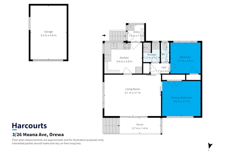 This charming two-bedroom home enjoys sun streaming into the living area while a north-facing veranda looks out across a generous, flat backyard with simple gardens and fruit trees. Perfect for relaxing in the sunshine or doing a spot of gardening. And the single garage? Ideal for storing the car you'll barely use.