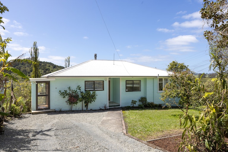 Outside, enjoy established fruit trees including banana, feijoa, guava, and citrus, adding a touch of rural charm. The property sits elevated on the hill overlooking the surrounding homes, with a convenient, but private driveway from the main road.