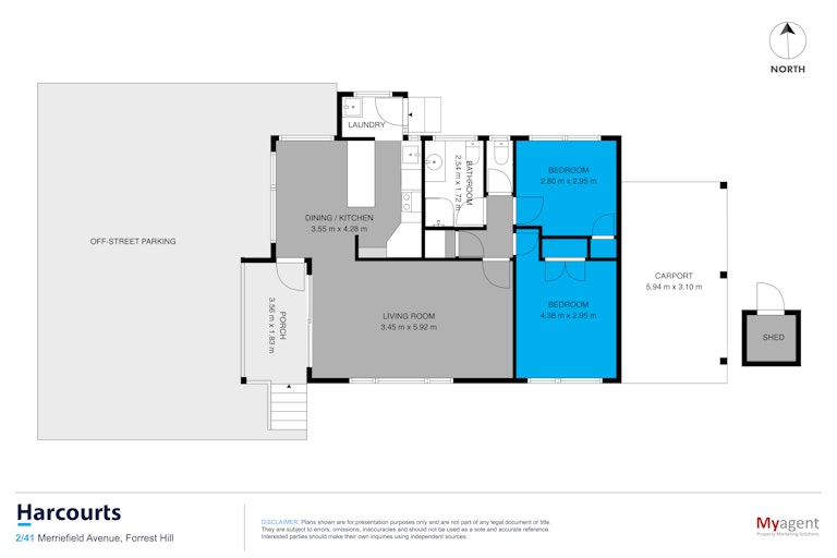 Offering two generous bedrooms, a well-appointed modern bathroom, and a spacious open-plan kitchen, dining, and living area, this home is filled with natural light and a welcoming sense of space. A separate laundry adds practicality, while ample parking, with a carport at the rear and private space for up to four cars in front, ensures everyday ease. This tidy front unit has been lovingly cared for by its current owner, promising low-maintenance living and peace of mind.