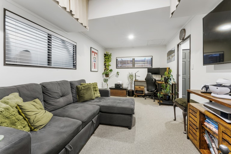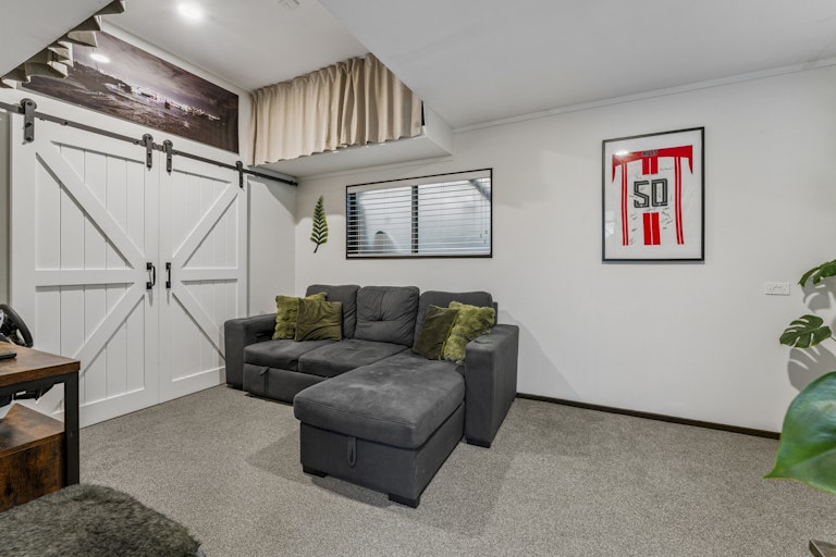 Downstairs, the converted garage offers a versatile second living area or rumpus room, ideal for teens, guests, or a work-from-home retreat.
