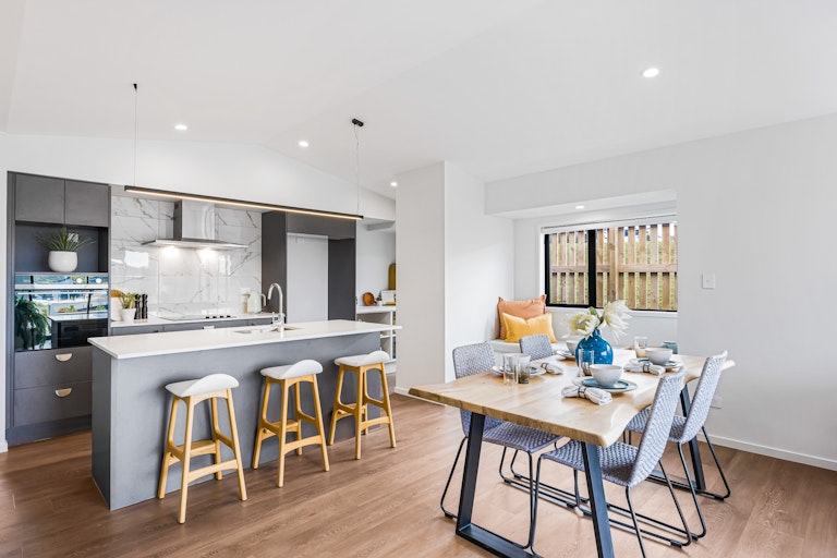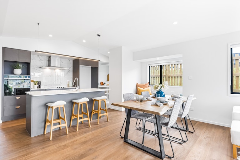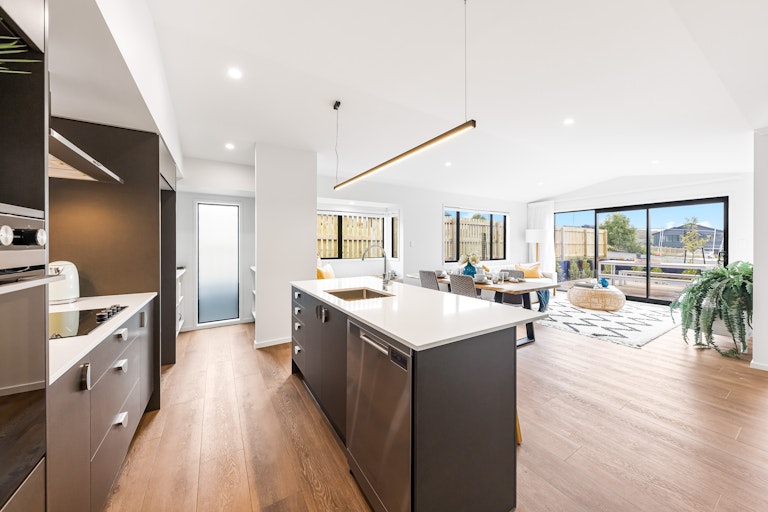 North-facing and set in the heart of Orewa's Ara Hills, this stunning residence is bathed in natural light through oversized windows and an open-plan design.