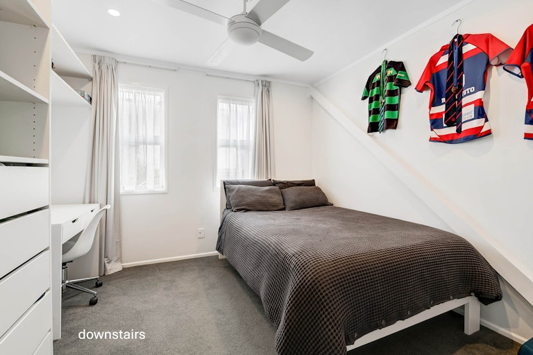 The thoughtfully planned layout offers defined living spaces on both floors, providing privacy and flexibility for every family member. Upstairs features two generous bedrooms, a bathroom, a modern kitchen, a spacious living area, and a large deck - ideal for relaxing, entertaining, and enjoying the street views. Downstairs includes another two bedrooms, a bathroom, and an additional living area that seamlessly connects to a neatly maintained backyard - a peaceful outdoor retreat perfect for kids to play or weekend barbecues.