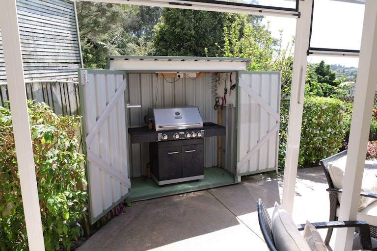 Garden Sheds (x4),Clothesline,Desk in garage,Cupboards/shelves in garage,HRV,Microwave,Alarm stays (hasn't been used by the current owners so will need a service and get alarm code),TV wall bracket in Master bedroom stays,Extractor fans in bathroom x 2,heated flooring in ensuite,Pull down stairs in garage to attic (attic in newly insulated and has plywood,Water tank for garden