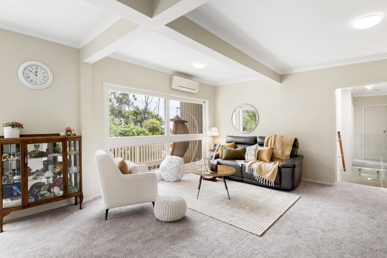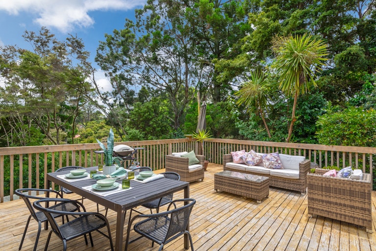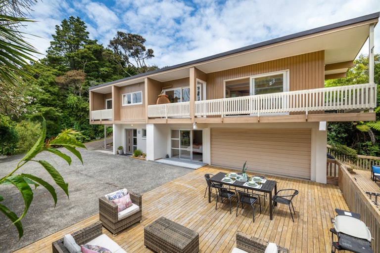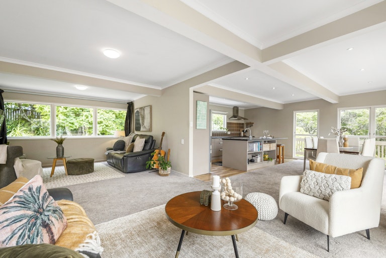 Set on a generous, bush-clad section, 8 Tranquil Glade offers a rare combination of space, privacy, and convenience in one of the North Shore's most sought-after locations. Surrounded by established native greenery, the property feels wonderfully secluded-yet remains close to shops, schools, transport, and all local amenities.