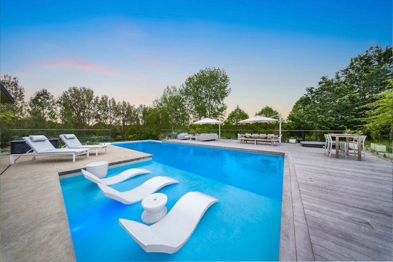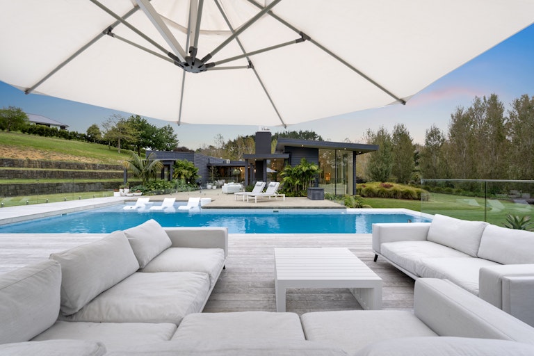 all pool furniture: pool umbrella; all outdoor garden arts and pots