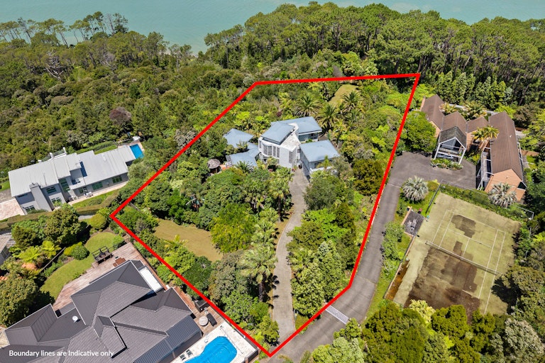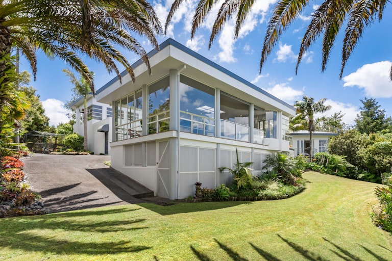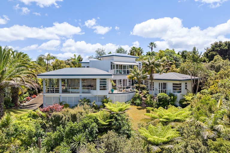Set behind a grand palm lined driveway, this striking Chatswood residence merges sleek, Miami Vice inspired style with expansive parklike gardens and breathtaking vistas. Spanning 5,078sqm of freehold land, it delivers a rare combination of glamour, space, and serene privacy, just minutes from Kauri Point Centennial Park, Kendall Bay Beach, and Little Kendall Beach.