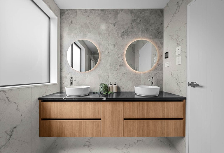 The harmonious blend of Hardiplank and Cedarwood creates a warm, contemporary exterior with undeniable presence. A beautifully finished Kwila deck welcomes you home and sets the mood for relaxed afternoons and elegant evening gatherings.