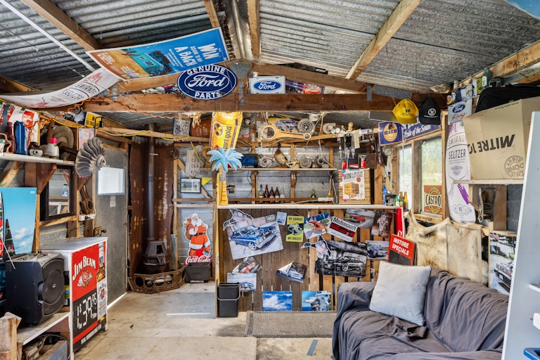 Outside, the lifestyle on offer is what truly sets this property apart. The expansive grounds include a paddock that wraps around the home, plenty of lawn space, and a vegetable garden patch. A fire pit area to gather around in the evenings with family and friends to enjoy the peaceful surroundings. A large garage currently serves as a man shed, complemented by an additional separate shed for tools, tinkering, or storage.