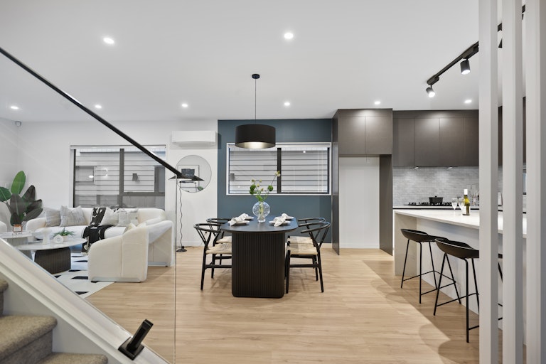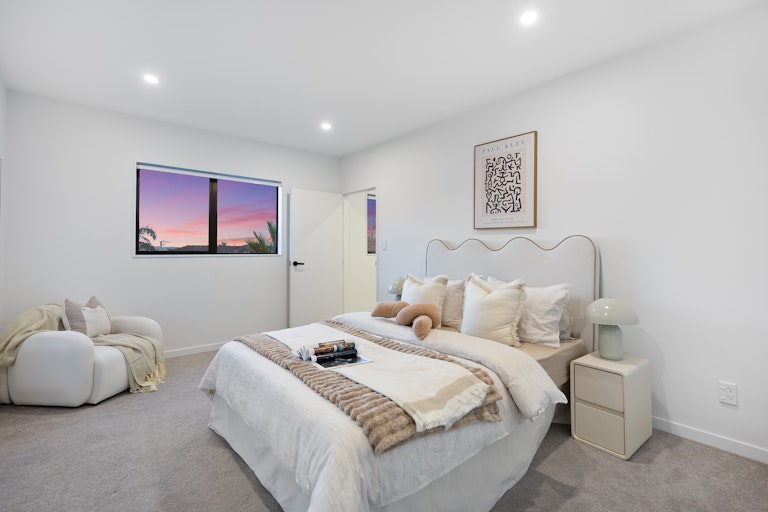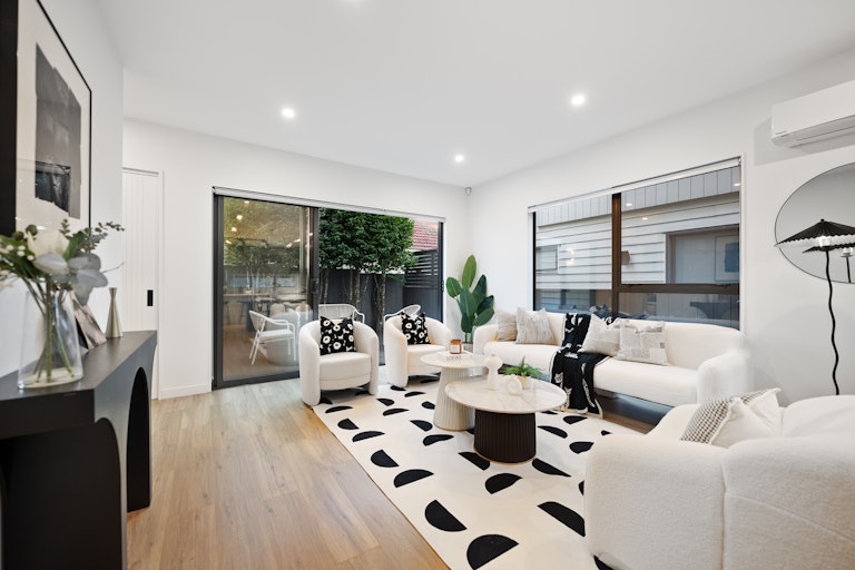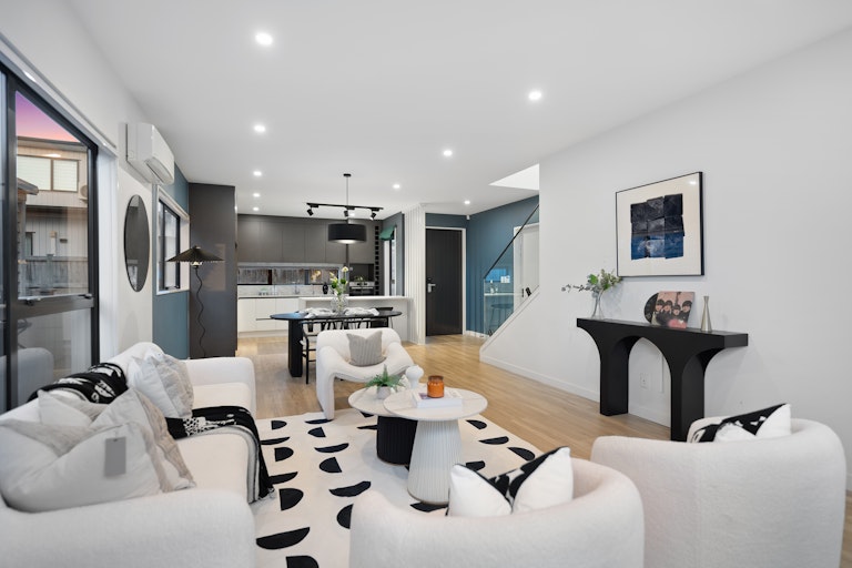 Located in the highly sought-after Hauraki area-one of the North Shore's most coveted coastal pockets-this near-new residence offers an exceptional blend of design integrity, refined detail, and unbeatable lifestyle convenience. This 182sqm (approx) freestanding home delivers effortless living across two well-considered levels on a Freehold title.