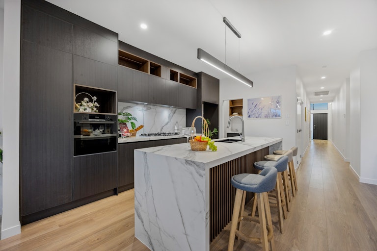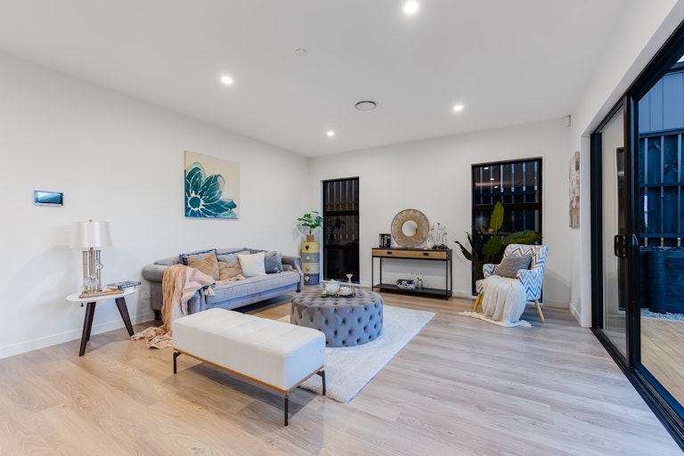 As you step inside, you'll immediately notice the sense of light and openness. High ceilings, generous glazing, and soft neutral tones create a calm, airy feel throughout. Subtle design details, such as rounded internal wall corners, enhance both the visual appeal and everyday safety of the home.