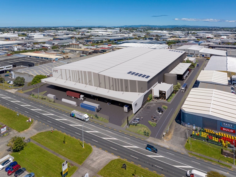 A high-profile, top-tier facility in East Tamaki's sought after industrial precinct, offering excellent access to the Southern Motorway and wider Auckland region. Located on a key arterial route, the site has a full drive-around layout, with three street access points and separate light and heavy vehicle lanes for operational efficiency. PFI is happy to consider leasing configurations, involving tenancies of 3,500sqm+, to suit incoming occupiers. This standalone facility has an enclosed breezeway at the rear, with canopy at front. The warehouse (12-13m knee, 16.75m apex) has 35 MPa fibre-reinforced flooring, sprinkler protection and will be supported by corporate grade two-level office accommodation.