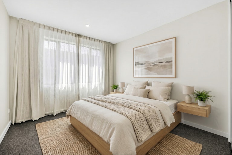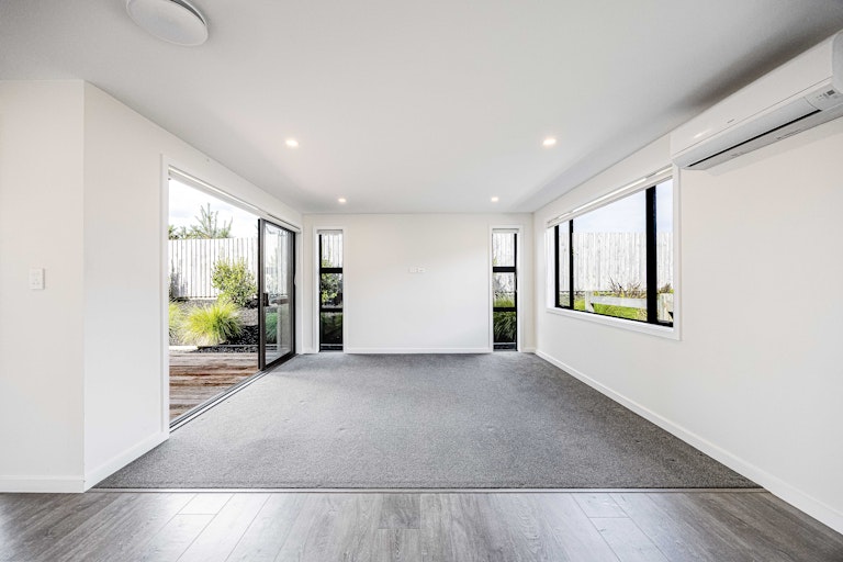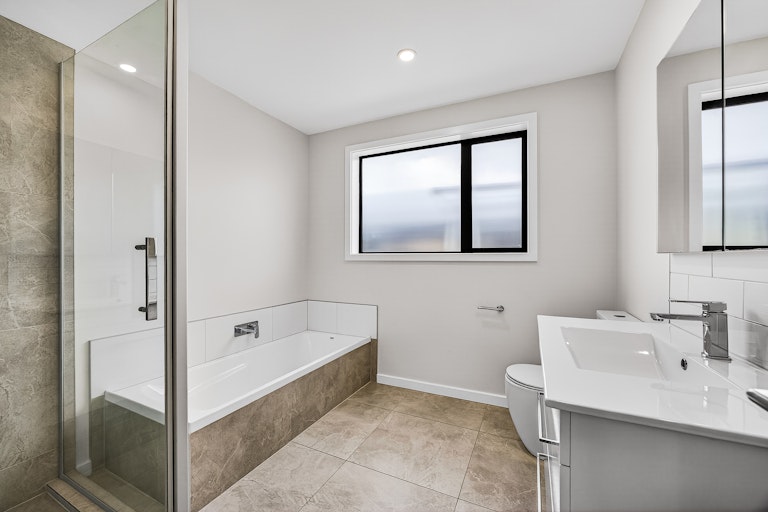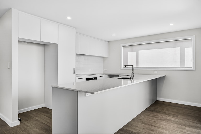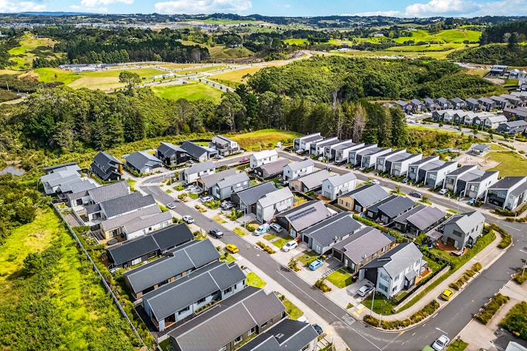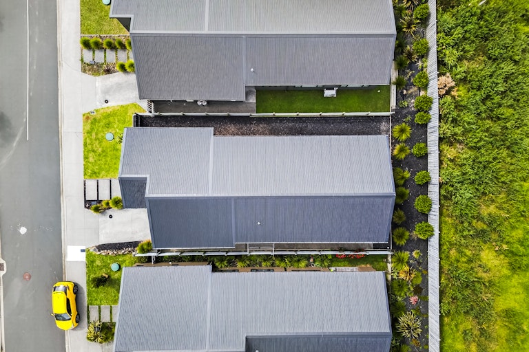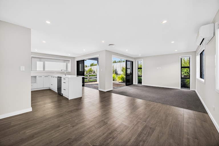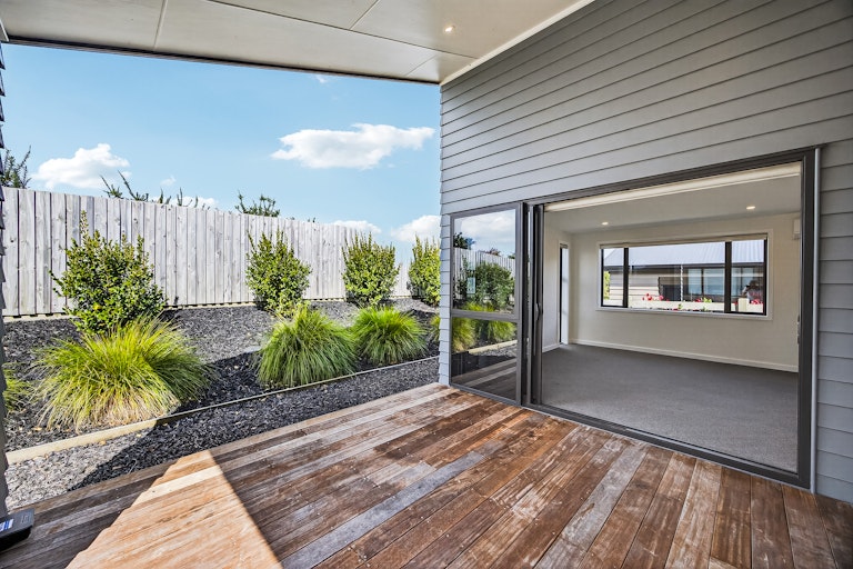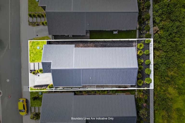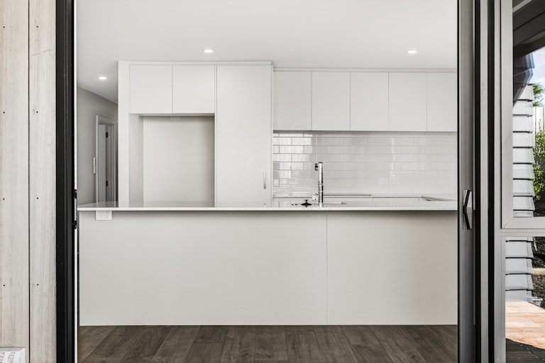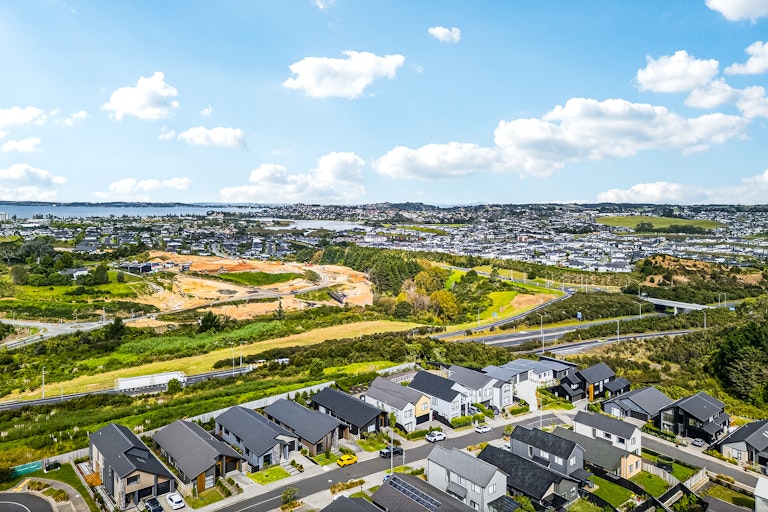 Positioned in the heart of Orewa's Ara Hills, this modern home offers sharp design, smart use of space and an easy-care setup that makes ownership straightforward. Light pours through the open spaces and wide stacker doors, pulling the outdoors in and creating a natural flow onto the kwila deck. The kitchen sits right at the centre of the home with a large island, modern finishes and quality Fisher & Paykel appliances that make it both practical and social. Clean lines and bright interiors give the entire home a fresh, modern feel.