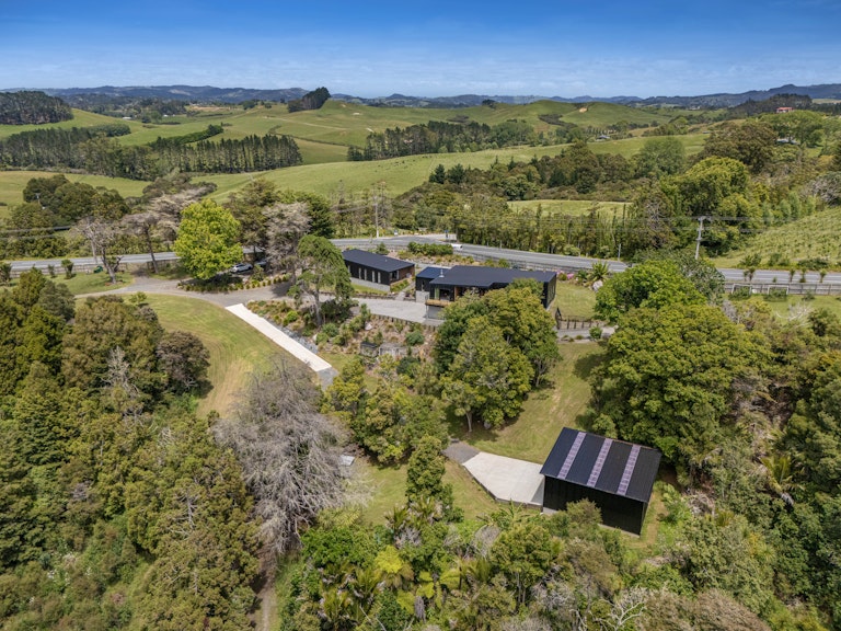 Privately positioned within covenanted native bush, 161 Sharp Road is a refined freehold lifestyle sanctuary. Here, architectural quality, natural beauty and versatility converge. Framed by mature trees and immersed in serenity, this exceptional property offers contemporary living across two beautifully appointed spaces, with elevated views extending out to Kawau Island.