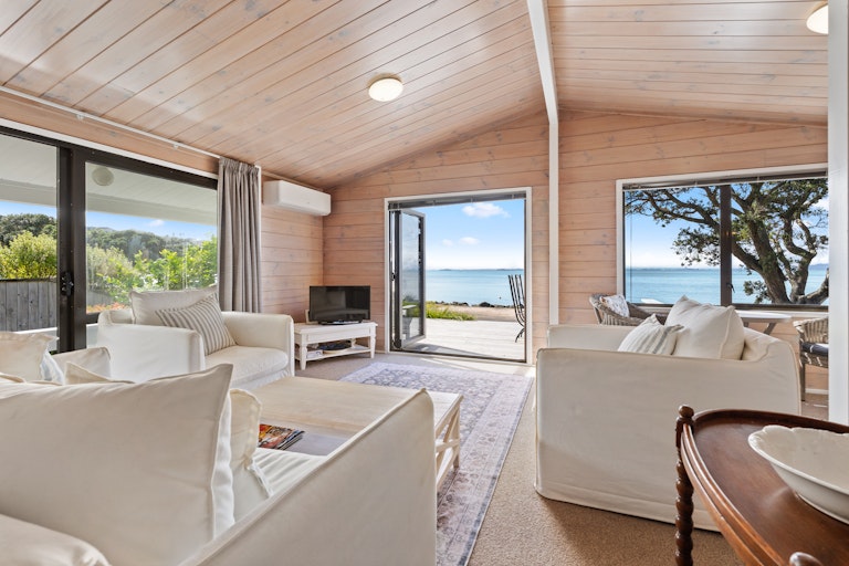 Set on a generous 912sqm freehold site, this classic Lockwood delivers that true Kiwi seaside feel, warm timber interiors, white-washed tones and day-dream windows perfectly placed to capture the ever-changing blues of the bay.
