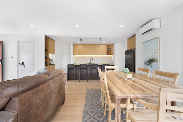 The master suite is a true retreat with air-conditioning, walk-in wardrobe and private ensuite. Comfort continues all year round with gas hot water, modern double blinds, and quality Z Space Builders craftsmanship and peace of mind with the balance of a 10year Certified Builders Warranty (Halo 10 Year Warranty).