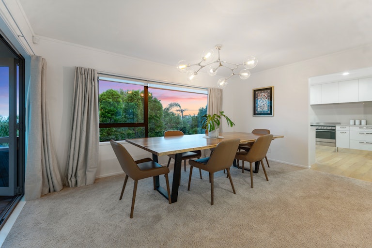 Sunlight pours into the heart of the home, where open-plan living, dining and a contemporary kitchen come together in a warm, welcoming hub. From here, seamless indoor-outdoor flow leads to expansive entertaining decks, the perfect stage for long lunches, sunset drinks and quiet moments soaking in sweeping Hauraki Gulf views.
