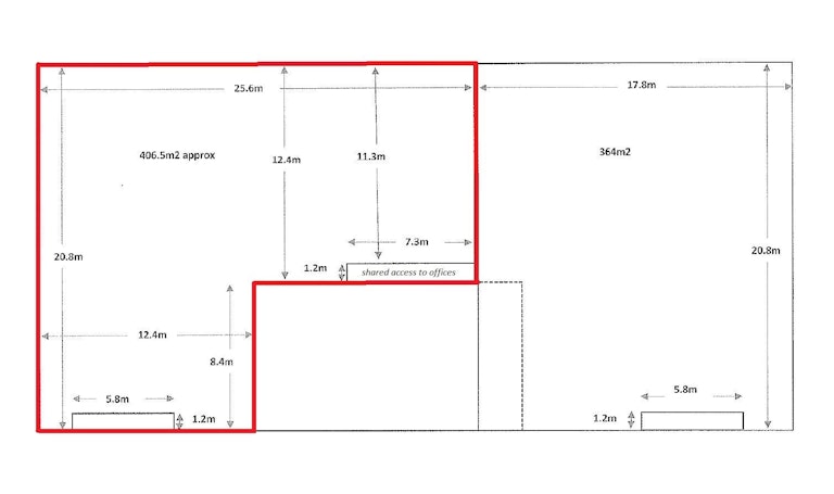 - 407sqm of clear span, high stud warehouse (8.4m stud)