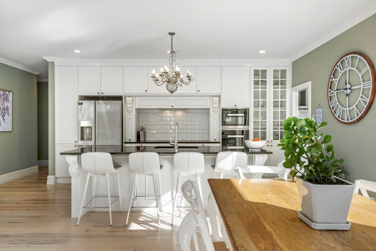 Rare in its design, generous in its proportions and exceptional in its execution, this home sits on a private, fully hedged corner site. Behind manicured gardens and a commanding entrance, the tone is set from the moment you arrive. High stud ceilings, oversized joinery and a refined Parisian influence create a sense of elegance, while natural light fills the interiors throughout the day. The living spaces open seamlessly to a beautifully landscaped outdoor zone, where expansive lawn, decking and a covered louvre area extend the home and enhance the feeling of space and privacy.