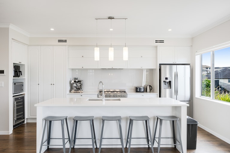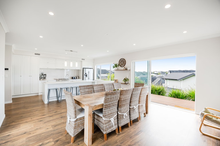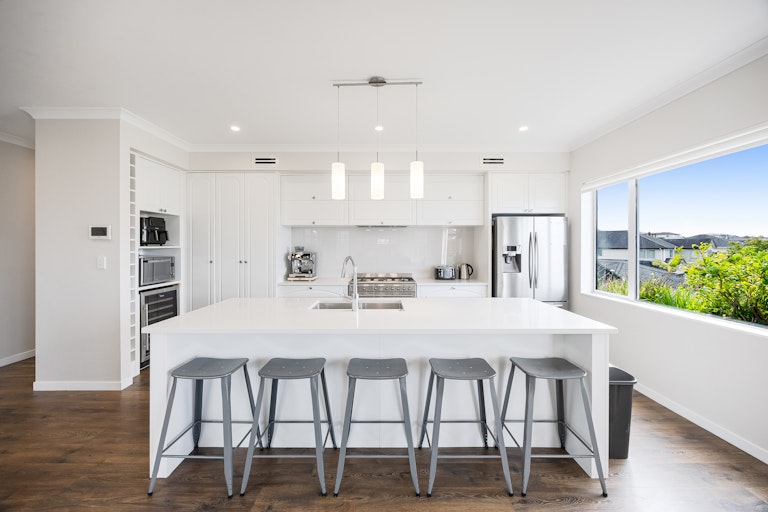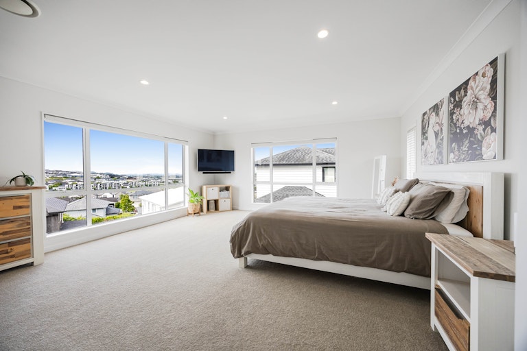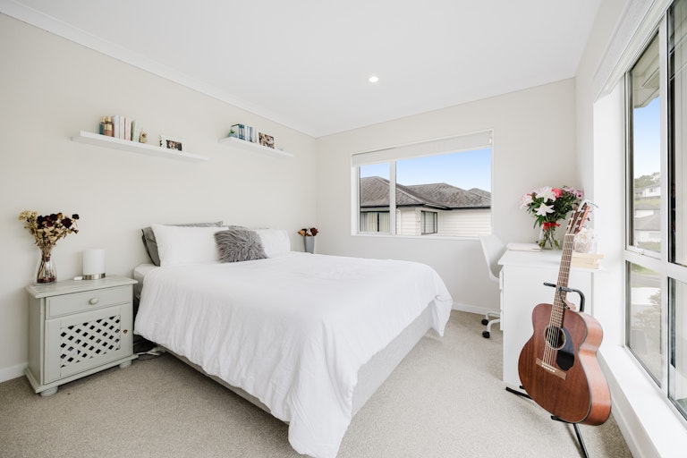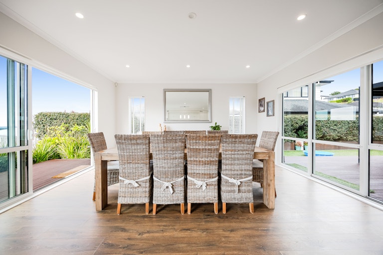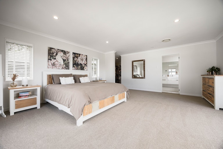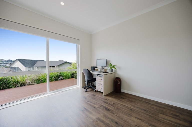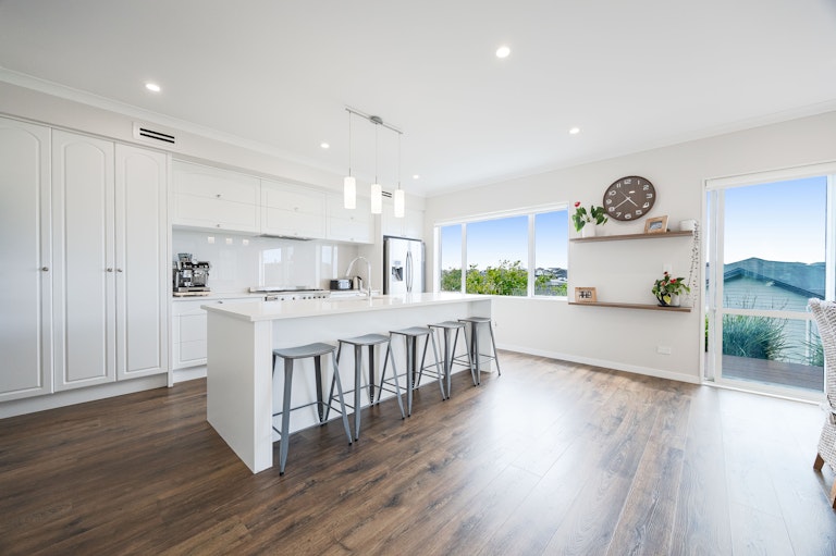 The layout offers real versatility with a generous downstairs bedroom featuring its own ensuite and outdoor access perfect for guests, teens or a dedicated work from home setup, while additional living space upstairs creates the perfect breakout zone for kids. Each bedroom is beautifully proportioned with great natural light and storage, while the spacious master enjoys elevated sea views, a walk in wardrobe and ensuite with spa bath. Laminate timber flooring adds warmth, high stud ceilings enhance the sense of openness, and every window seems to frame either greenery or sky. It's a home that invites you to open everything up and let life unfold.
