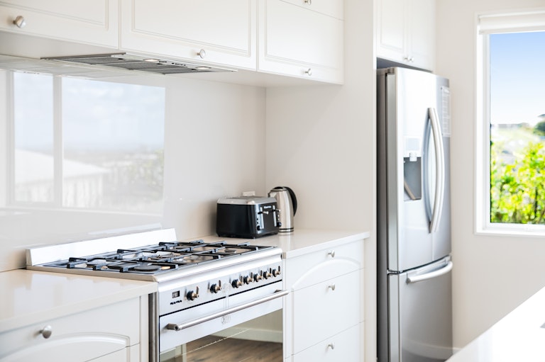 Positioned at one end of the home, the kitchen, dining and main living areas make the most of the elevated outlook, creating a light filled hub that draws everything together. The kitchen anchors the space with generous bench space, gas cooking, and effortless connection to the dining area, all opening wide to a deck where you enjoy beautiful sea views. Those views extend through multiple vantage points of the home, including the downstairs bedroom and master suite, creating a constant connection to the coast. The expansive louvre-covered outdoor zone is the true centrepiece for entertaining, with sliding doors opening from three separate areas and ample space for the BBQ.