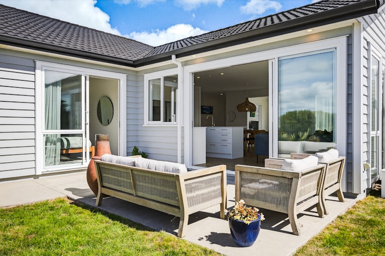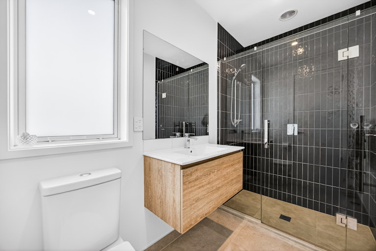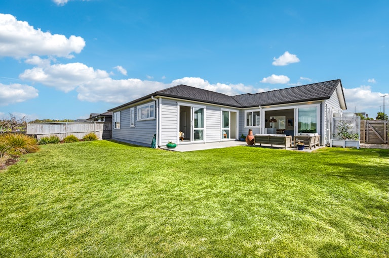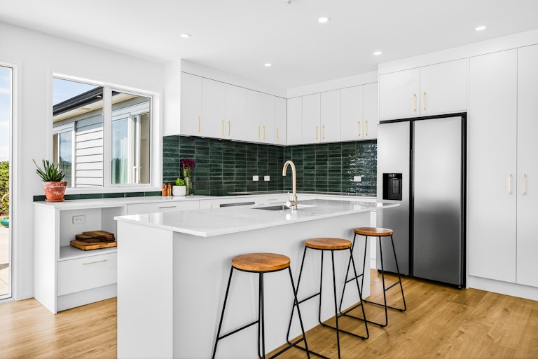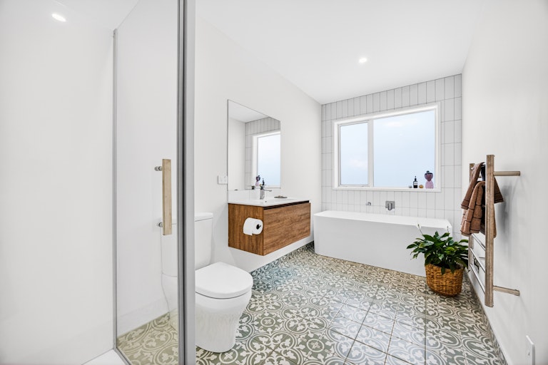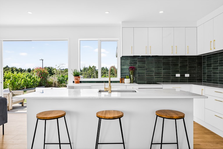 The kitchen is the true hub, anchored by an oversized island that handles everything from school lunches to long dinners with friends. Brass hardware, induction cooking, and sleek finishes give it a modern, sophisticated edge. There is excellent storage, generous bench space and a layout designed for real day to day living, not just for show. Stacker doors peel back to a generous patio and wide lawn, creating seamless flow to an outdoor space that is genuinely hard to find. There is room for backyard cricket, room for a trampoline, and spa pool without compromising lawn or entertaining zones.