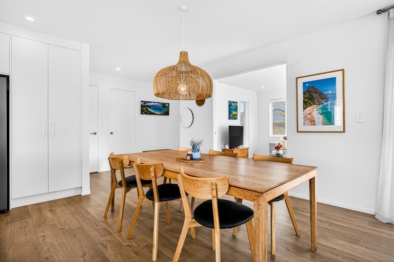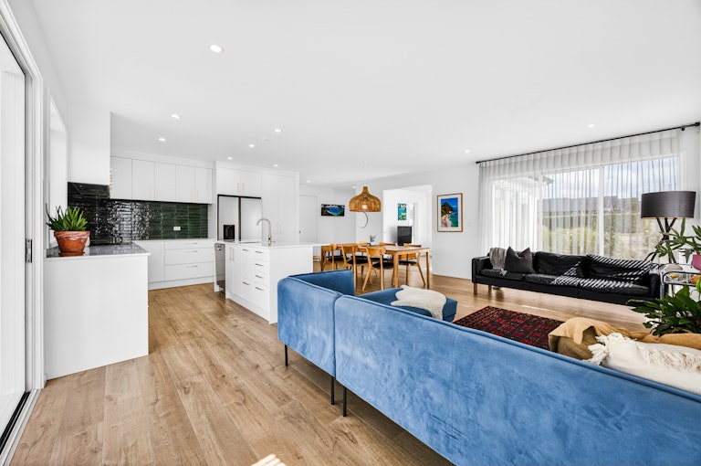 Elevated and bordered by bush, with space and privacy between neighbours, this home delivers serious family space, with a backyard built for kids, pets and proper entertaining. Built by Sentinel Homes and kept in outstanding condition, this four-bedroom home delivers scale with a real sense of comfort and practicably. The open plan living, kitchen and dining zone is big, bold and beautifully connected, with natural light pouring in and greenery framed from almost every angle. Laminate timber floors and subtle coastal tones soften the crisp white palette, while the layout gives you room to spread out and live comfortably as a family.