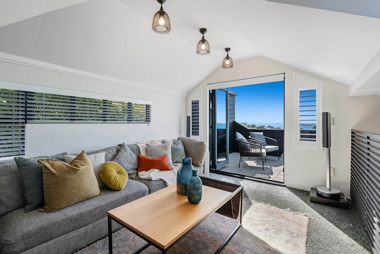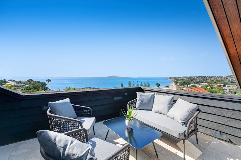 Wide, uninterrupted sea views stretch across to Rangitoto and the Hauraki Gulf, creating a spectacular backdrop to everyday life. Whether you are entertaining, enjoying your morning coffee, or unwinding at the end of the day, the ever-changing seascape takes centre stage.