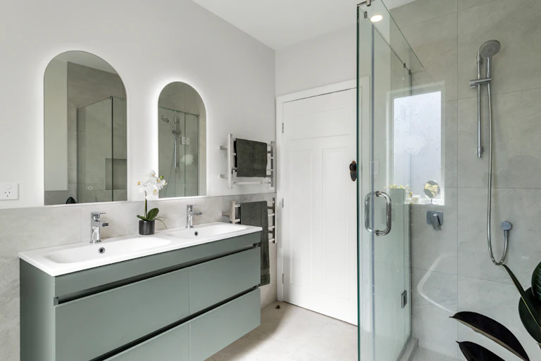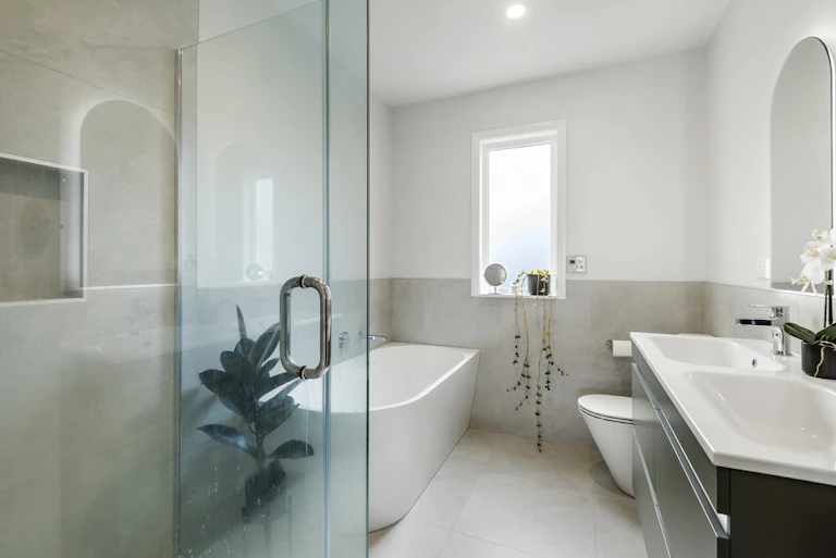 A sleek tiled bathroom and integrated laundry keep everyday life streamlined and elegant.