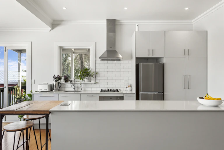 Original rimu floorboards guide you down the central hallway into the heart of the home - a spacious open-plan living zone expanded by enclosing the former verandah. Oversized windows invite in late-afternoon sun and leafy views, filling the dining area with natural light. A designer kitchen anchors the space, flowing seamlessly into a relaxed lounge designed for entertaining, conversation and connection.
