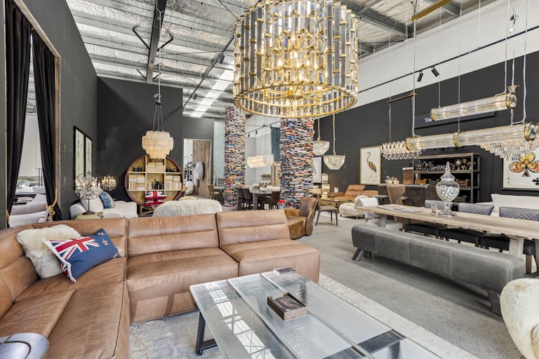 - High-stud showroom, bulk retail or warehouse space with polished concrete floors, complemented by a lower-stud showroom and first-floor offices/mezzanine above;