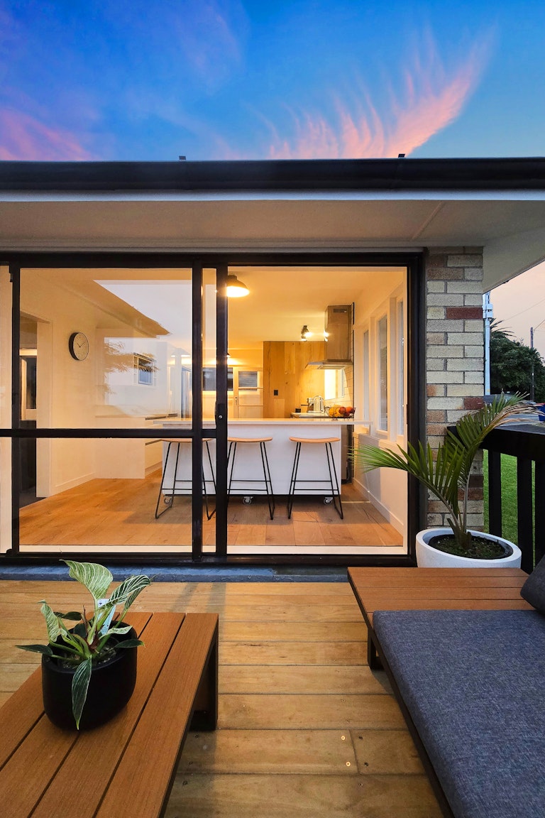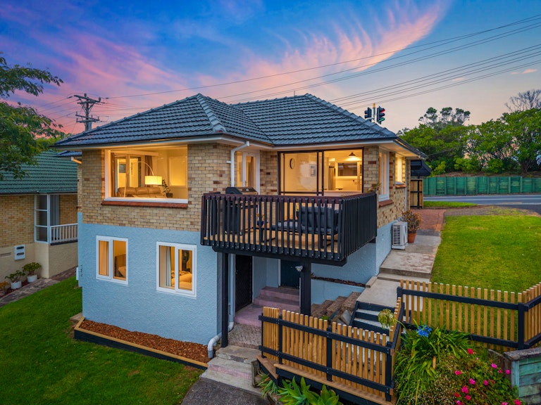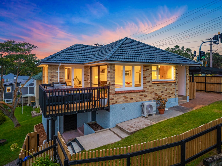A stunning renovation, where solid brick, block and tile construction meets spectacular views , all thoughtfully executed for modern North Shore living. Perched to capture sweeping north-easterly views across Rangitoto and the city skyline, the upper-level living and kitchen are bathed in natural light from morning through to dusk, and flow effortlessly to the entertaining deck that invites long summer evenings and boasts the kind of outlook that never gets old, is ever-changing, and always impressive.