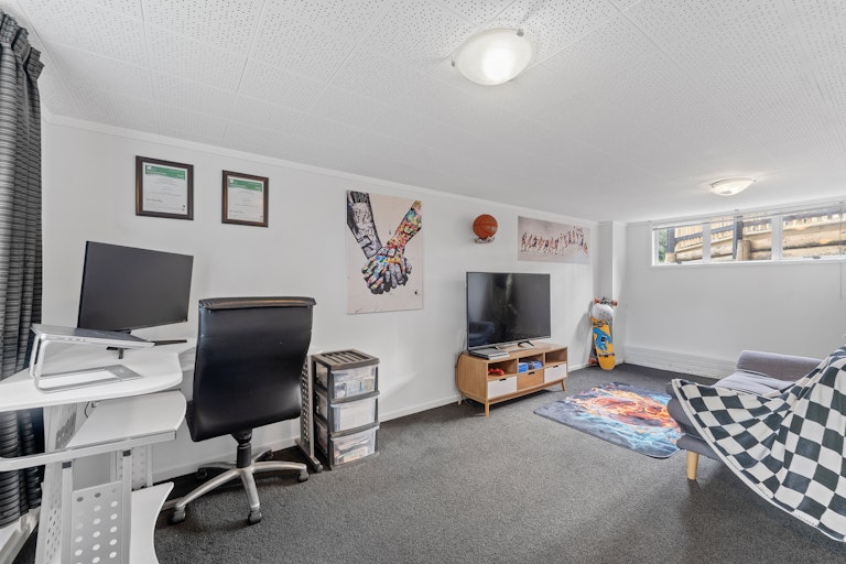 Upstairs, the generous master retreat enjoys the best of the elevation and aspect, while downstairs offers a second bedroom plus an additional flexible living space, ideal for a home office, guest room, creative studio or teen retreat. A terraced lawn provides space for kids to play, while the carport and additional off-street parking keep daily life easy.