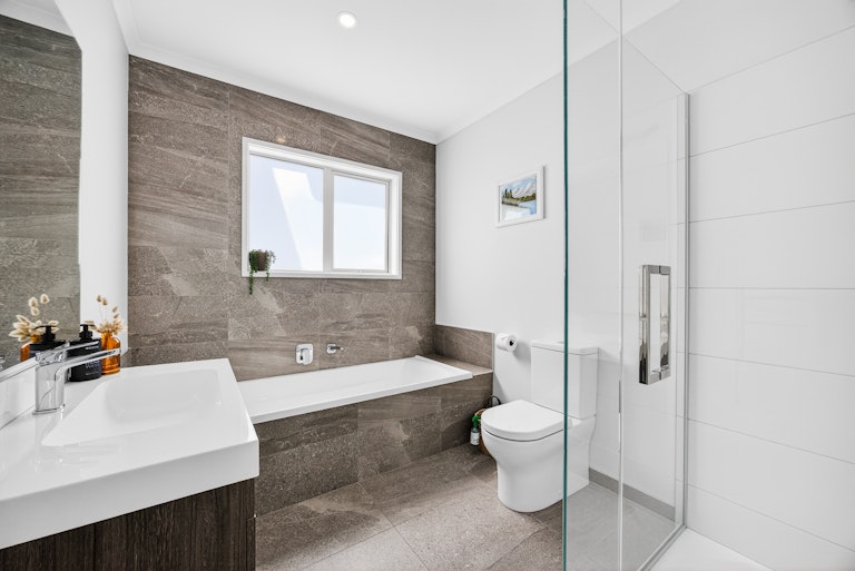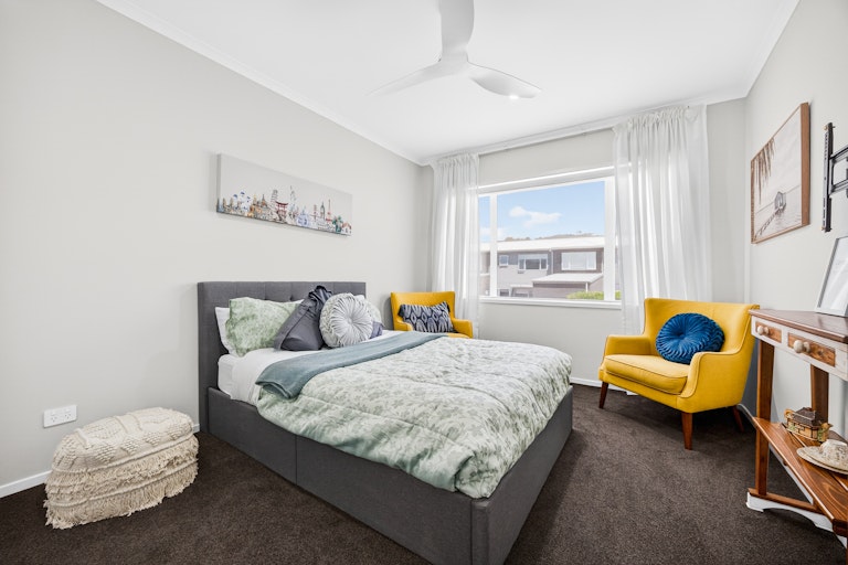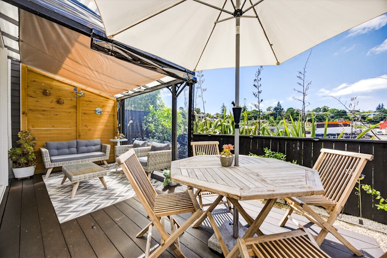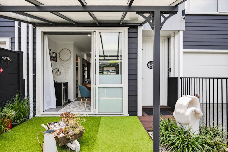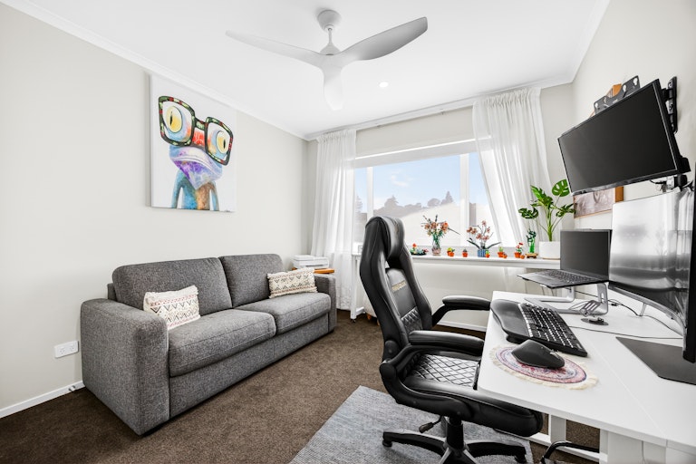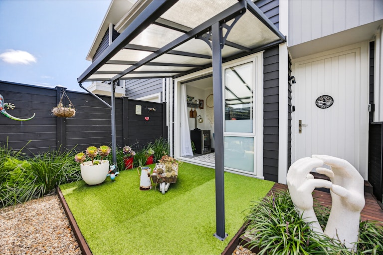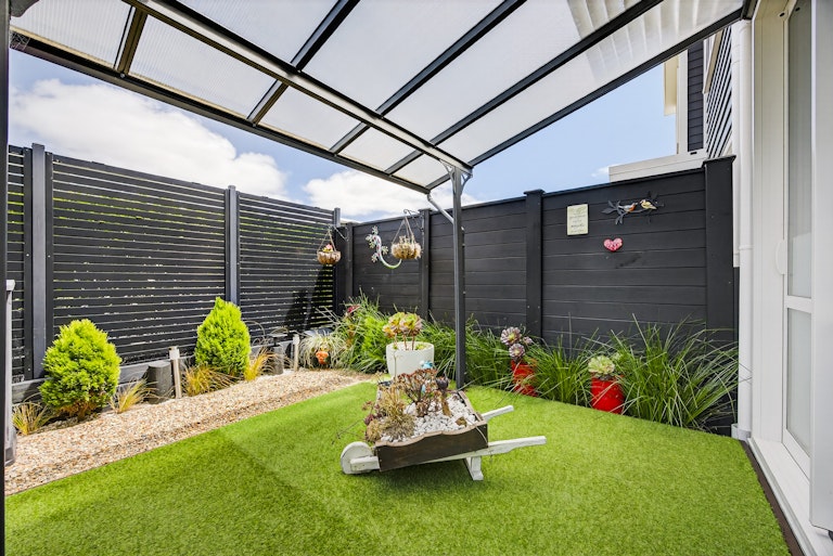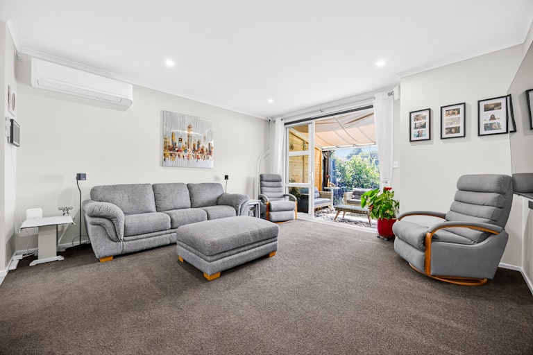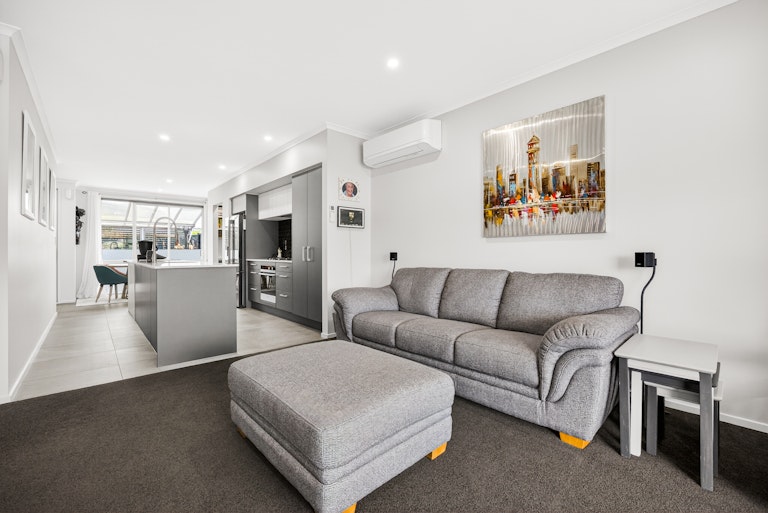 The living room is generous and light filled, complete with heat pump comfort and large sliders that open to a sheltered entertaining zone. Outside, you have two separate outdoor living zones that capture all day sun, a covered patio for year round entertaining and a landscaped courtyard that keeps things low effort and easy to manage. It is ideal for downsizers who still want outdoor space or first home buyers wanting something completely move in ready. Built by GJ Gardner and immaculately presented, this is modern living without compromise.