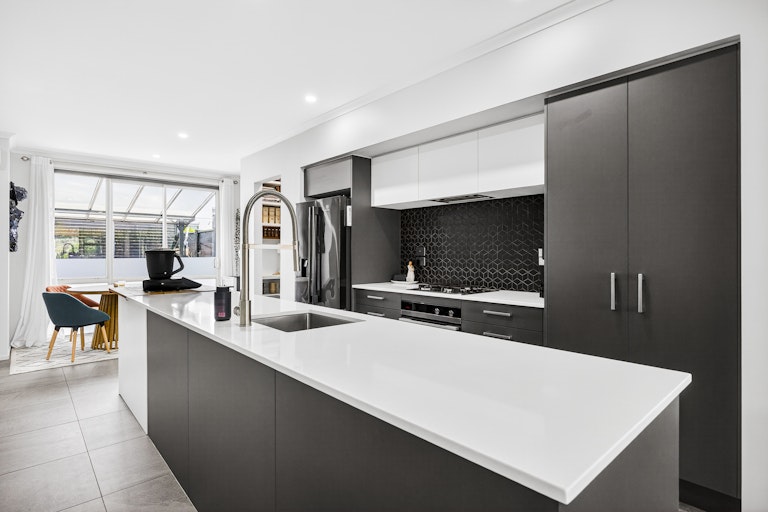 This is sharp, low maintenance living done right. Clean lines on the outside, a smart layout inside, and a private courtyard that feels like your own hidden retreat. The kitchen is sleek and modern with stone benchtops, gas cooking and a striking dark tiled splashback that adds depth and edge. It flows seamlessly into the living area and straight out to the covered outdoor space, creating a home that feels open, connected and easy to live in.