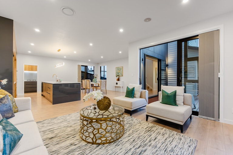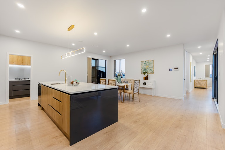 Finished with high-quality materials, the home showcases an elegant timber weatherboard and shiplap exterior, seamless open-plan living, a luxury kitchen with scullery, and multiple living areas that flow beautifully to outdoor spaces while capturing the stunning views.