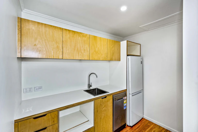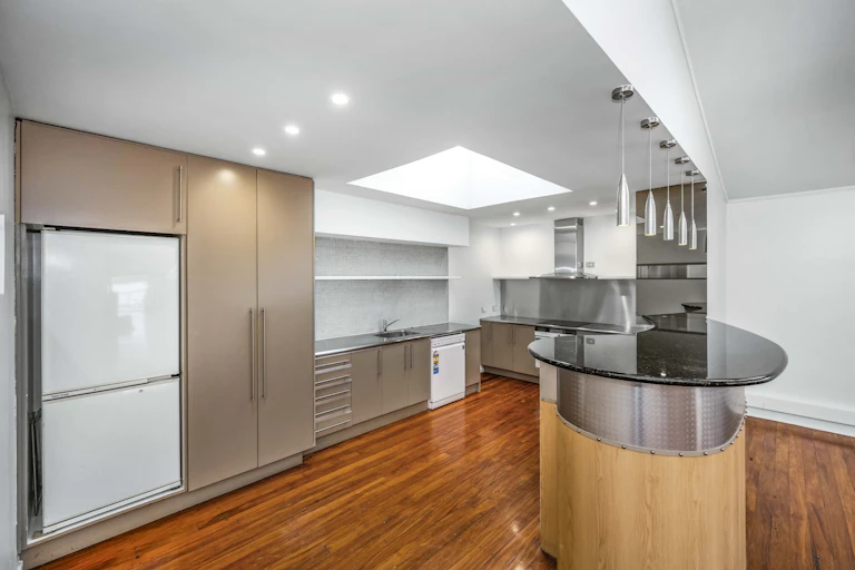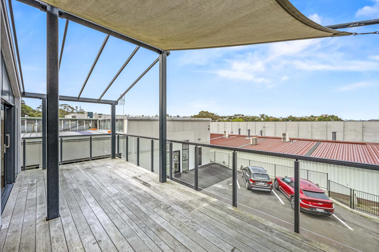 The tenancy features a practical layout with a mix of open-plan workspace and partitioned offices, along with a welcoming showroom area at the entrance that can be separated from the main office. Timber floors throughout and a private deck create a comfortable working environment, ideal for staff breaks or a team BBQ.